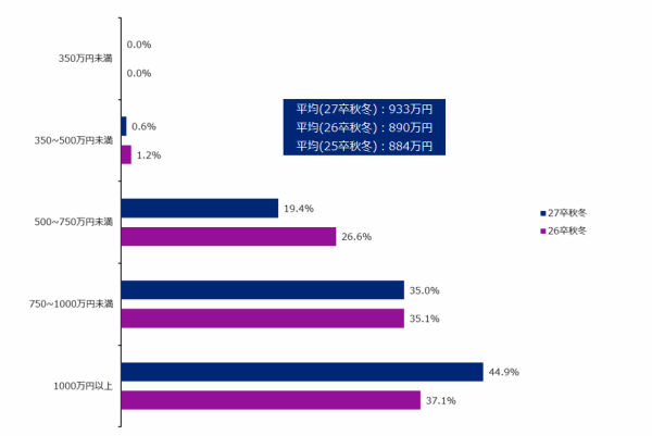 30歳時点の希望年収は933万円。年収志向は過去最高水準