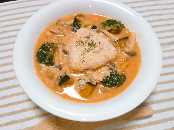 食べるスープでパワーチャージ!「アサリのトマトミルクスープおにぎり」
