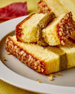 発酵バターを贅沢に使用した生地にほろ苦く香り高いほうじ茶のバタークリームをサンドしました。