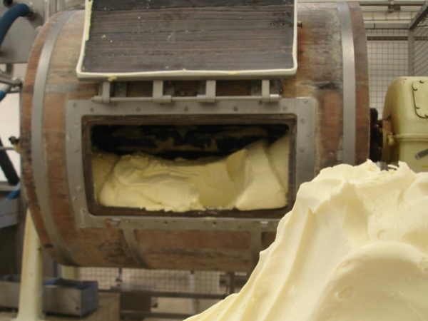 この製法の最大の特徴は、木製のチャーン(撹拌機)を使って、生乳からゆっくりとバターを練り上げるという伝統的な工程。