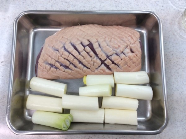 1.合鴨肉は冷蔵庫から出し、1時間程度室温に置きます。
