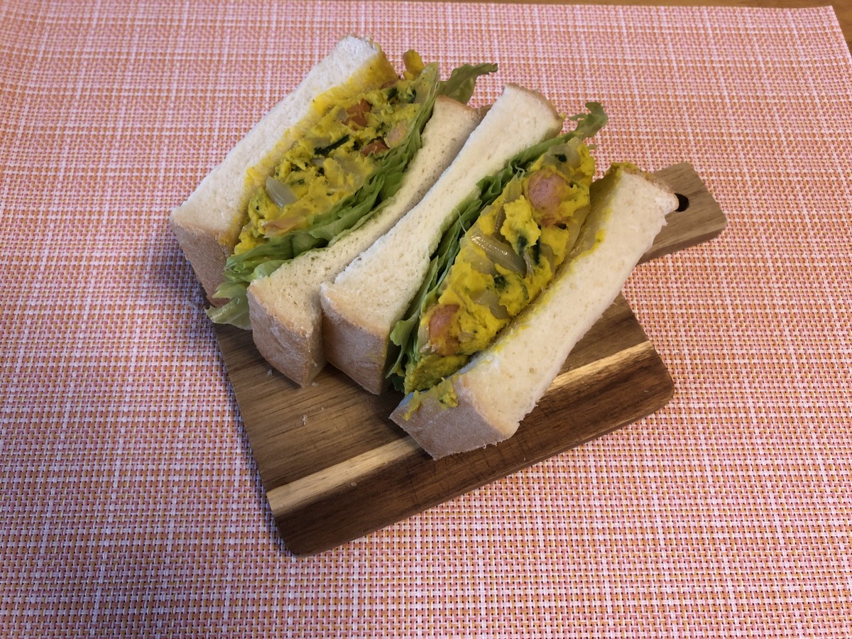かぼちゃのサンドイッチは珍しいですが、かぼちゃ、玉ねぎは免疫力アップにつながる食材であり、つぶしているので食べやすいと思いました。
