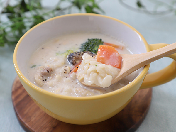 身体があたたまって、骨粗しょう症予防になる牛乳で作るスープです。