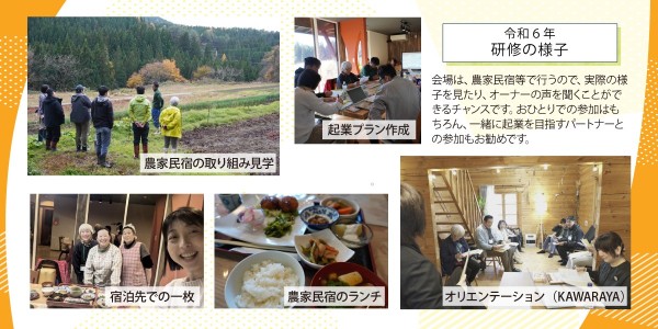 - 対象:秋田県内での農泊ビジネス起業を考えている18歳以上~概ね65歳までの方