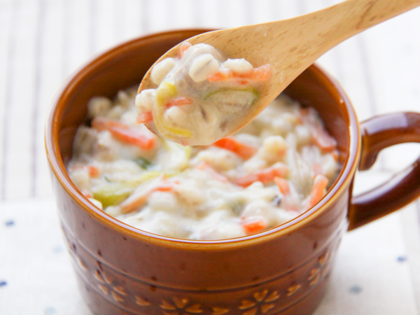 押し麦の代わりにうどんを入れると夜食にもぴったりのメニューになります。