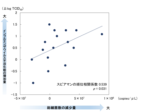さらに、口の中の総細菌数が減少した人ほど、唾液のウイルス抑制力が高まる傾向も確認されました。