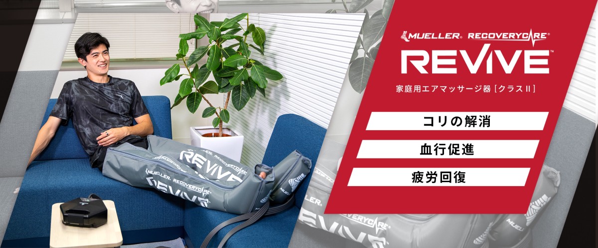 谷口選手が愛用しているのは、ミューラー社の家庭用エアマッサージ器『RecoveryCare REVIVE™(リカバリーケア リヴァイブ)』。