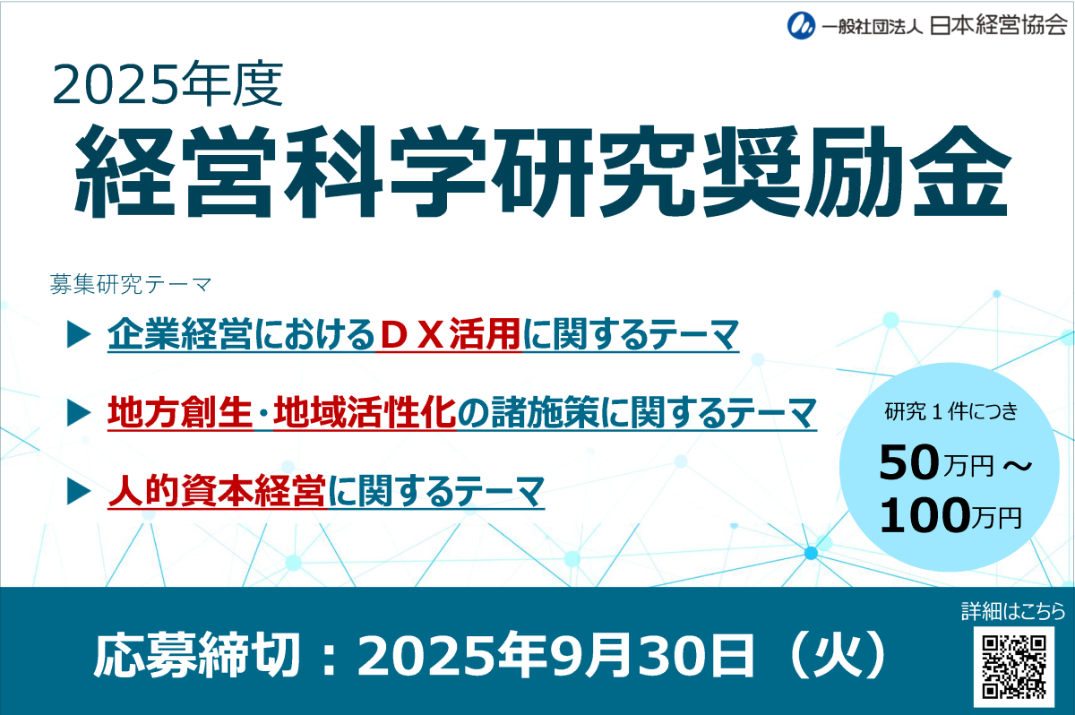 研究職としてのキャリアをもっと前に!2025年度経営科学研究奨励金」応募スタート テーマはDX・地域活性・人的資本【最大100万円】